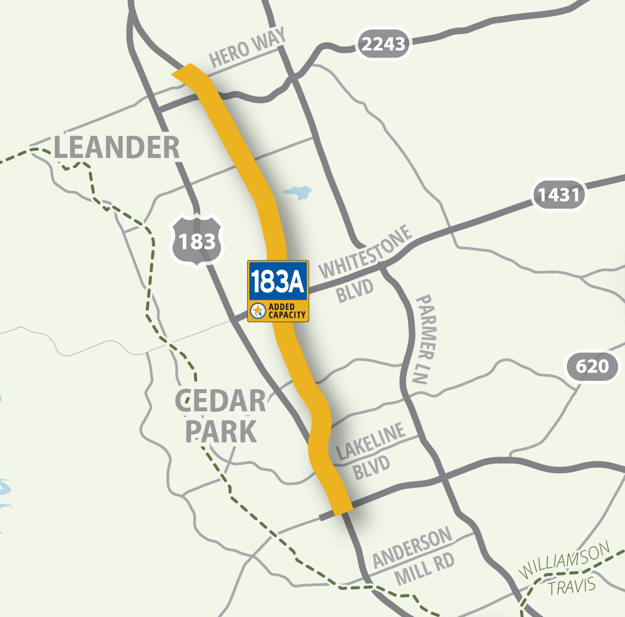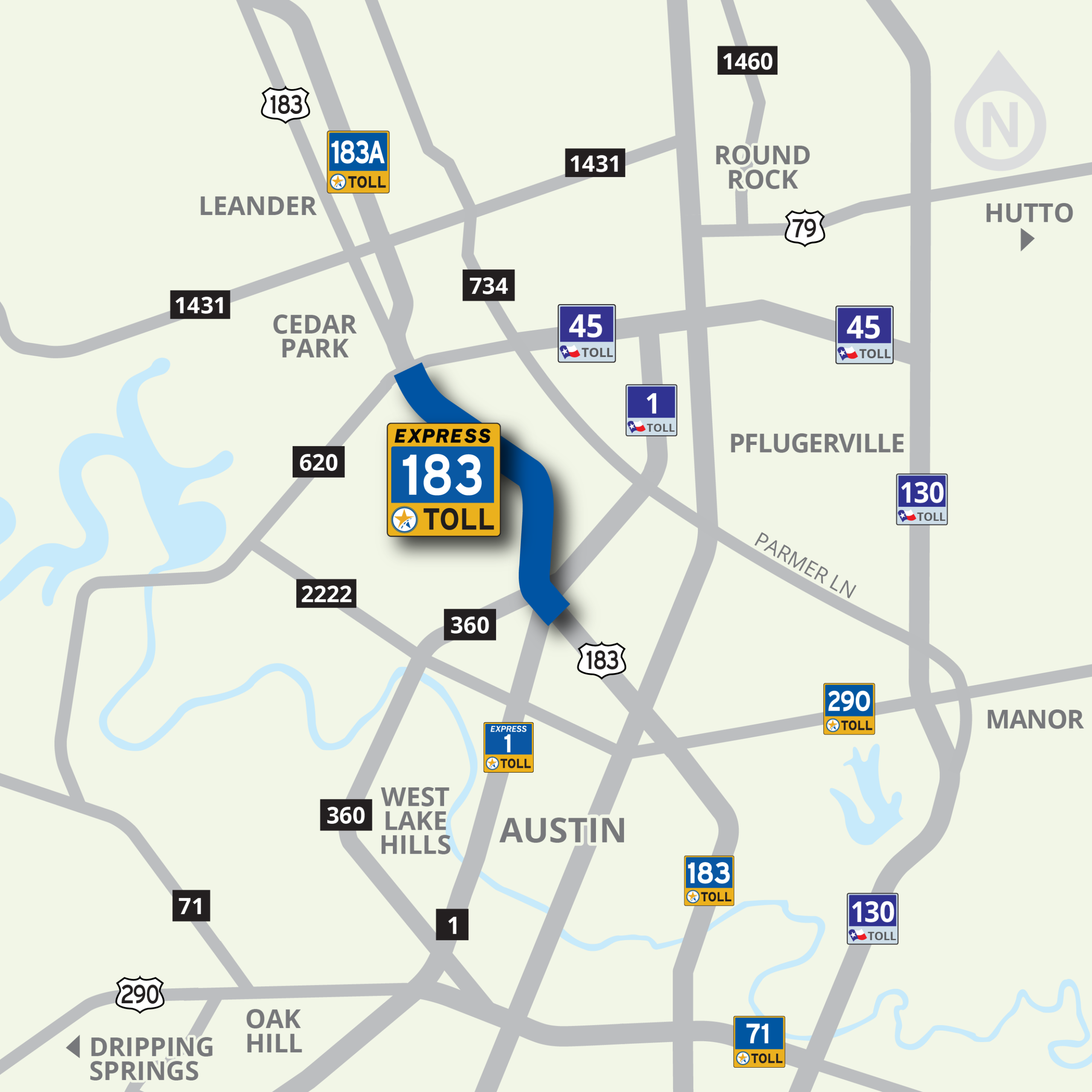 Map highlighting the 183 Toll road