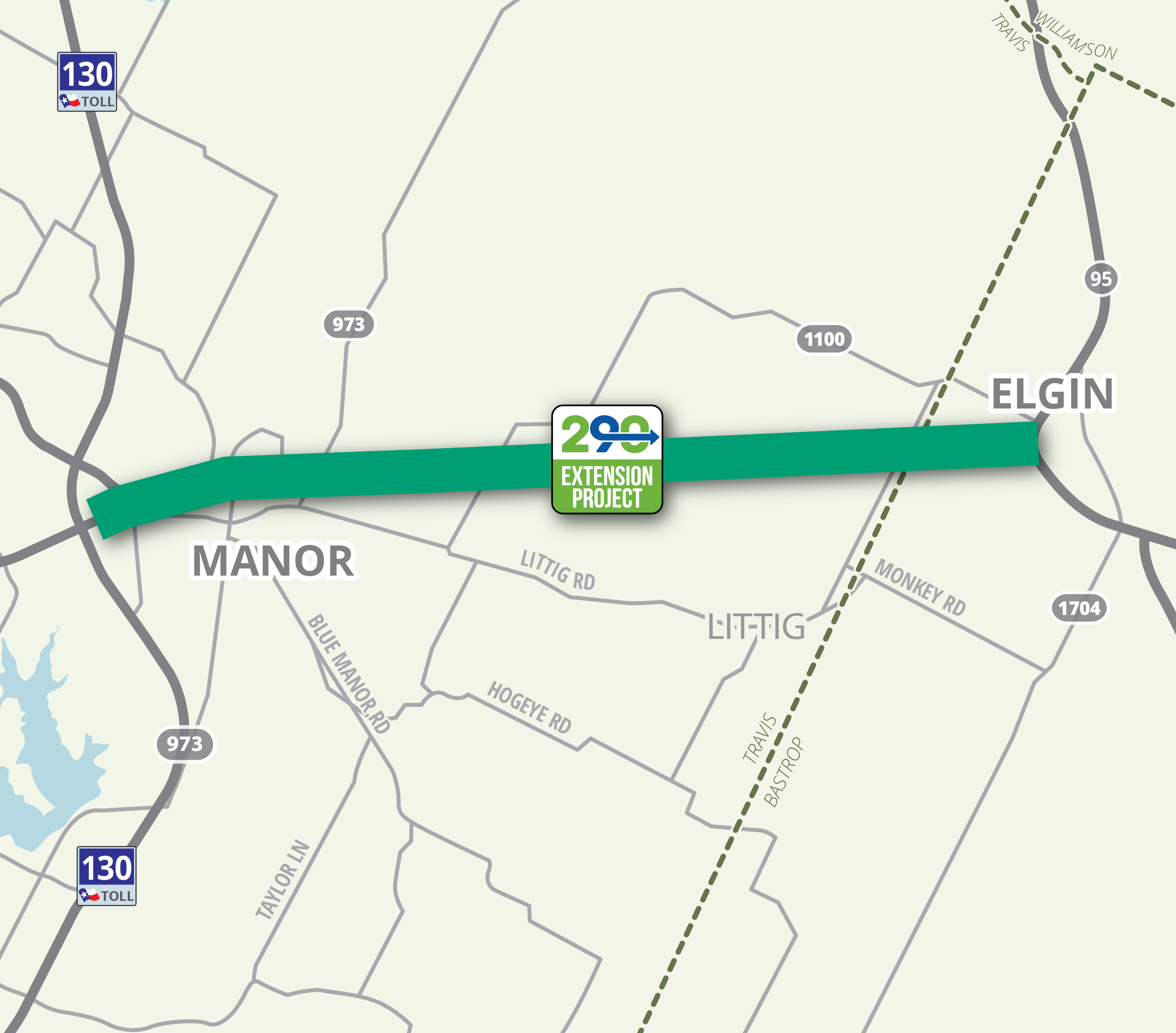 Map highlighting 290 Toll